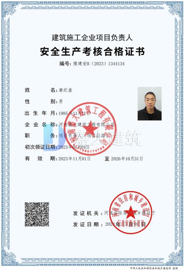 上一个:丁水红合格证书 下一个:2024年度A级分包企业